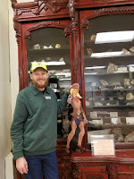 Owyhee County Museum Director Eriks Garsvo and Honey Beaulieu in front of Colonel Dewey’s ore cabinet